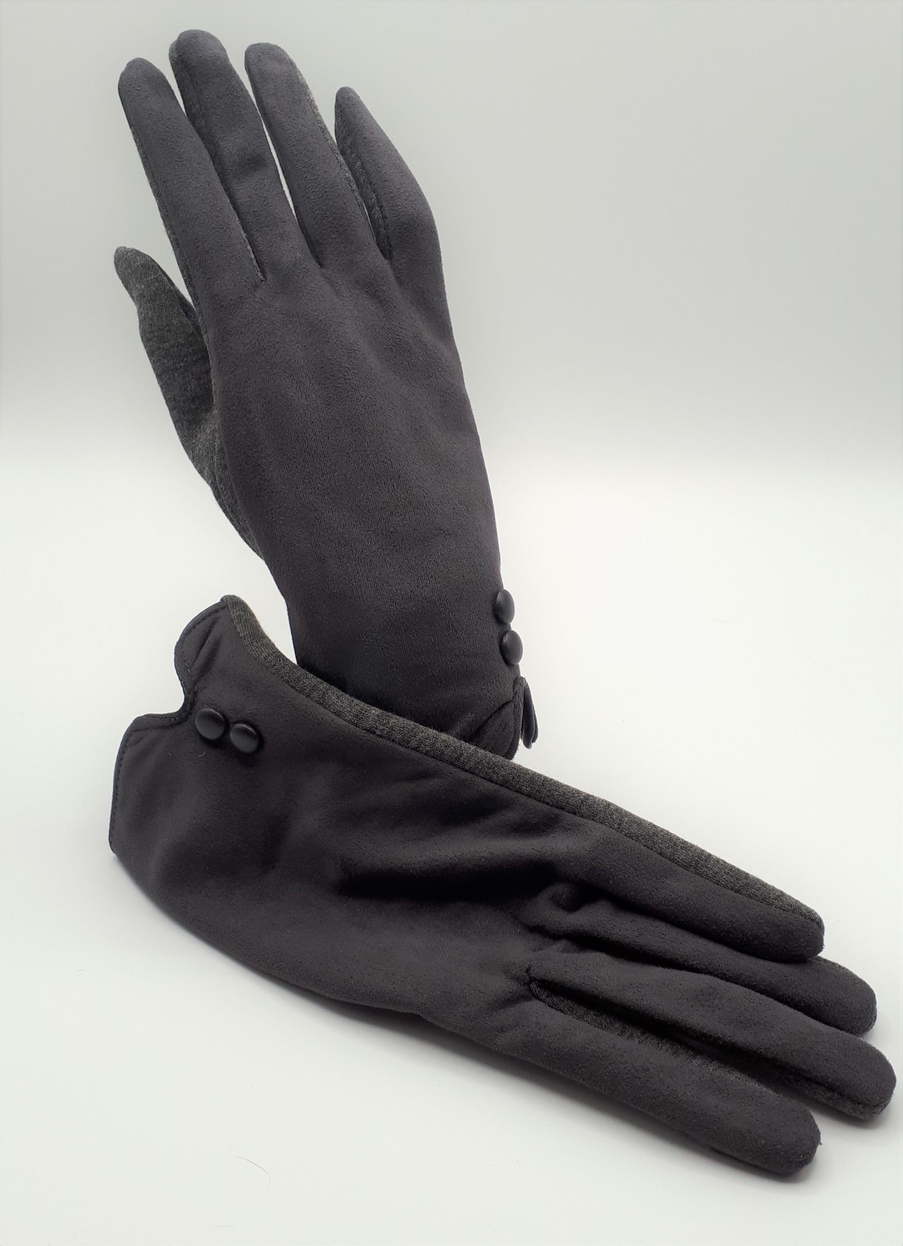 Ideal driving glove with simple classic details. Slight ruching at wrist with miniature leather like button accents. Satin finger and thumb tip for easy texting. Spot clean only and lay flat to dry. Match it with one of our winter scarves for a truly fashionable look. Great gift idea too!